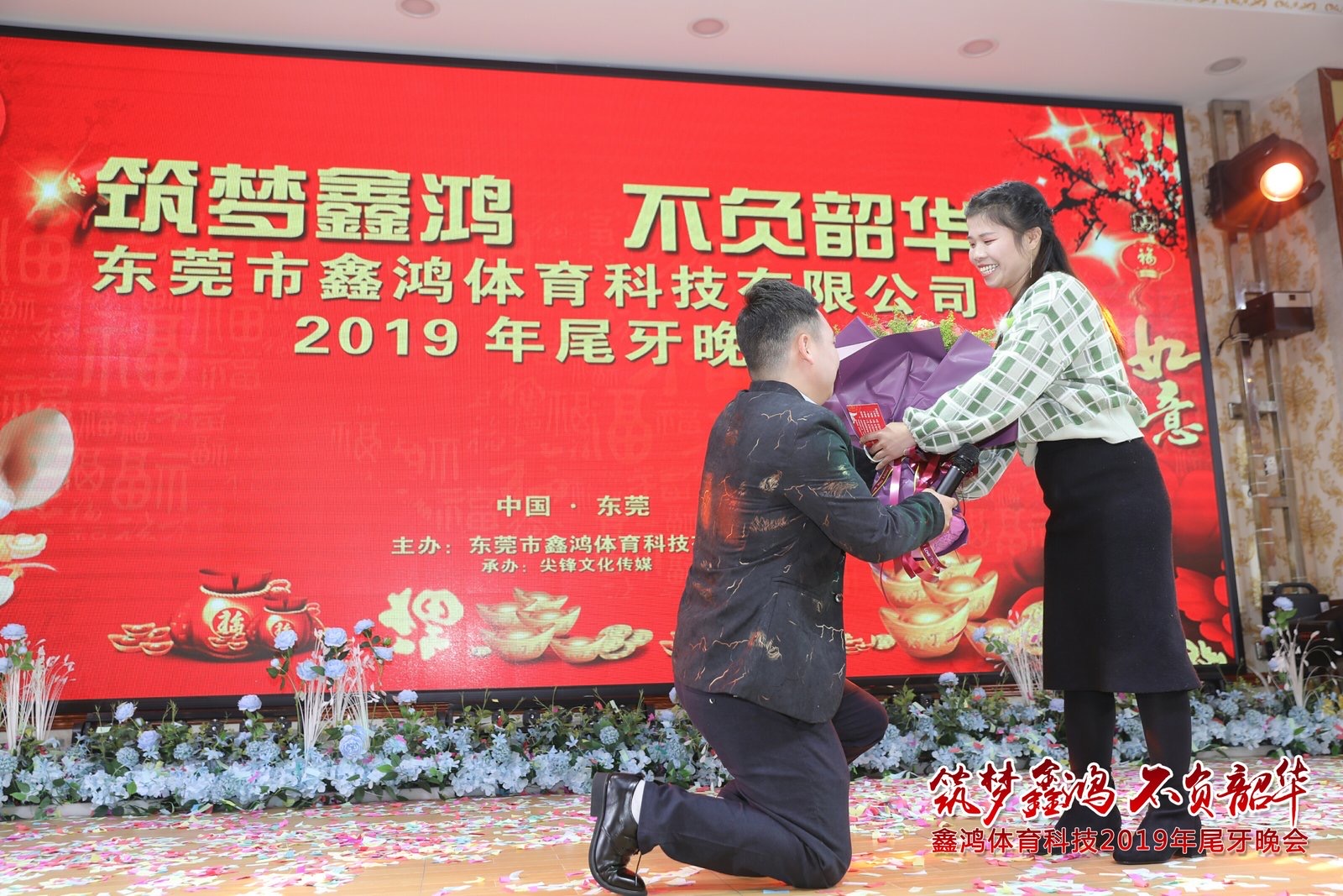 在精彩絕倫的節目中,晚會竟超意外的穿插了一個足以讓人記憶一輩子的節目---現場求婚,在新郎許諾許一世繁華給新娘時,那場景足以讓全場所有人員激動顫抖,淚流滿面,我們鑫鴻是多么的有愛啊。
